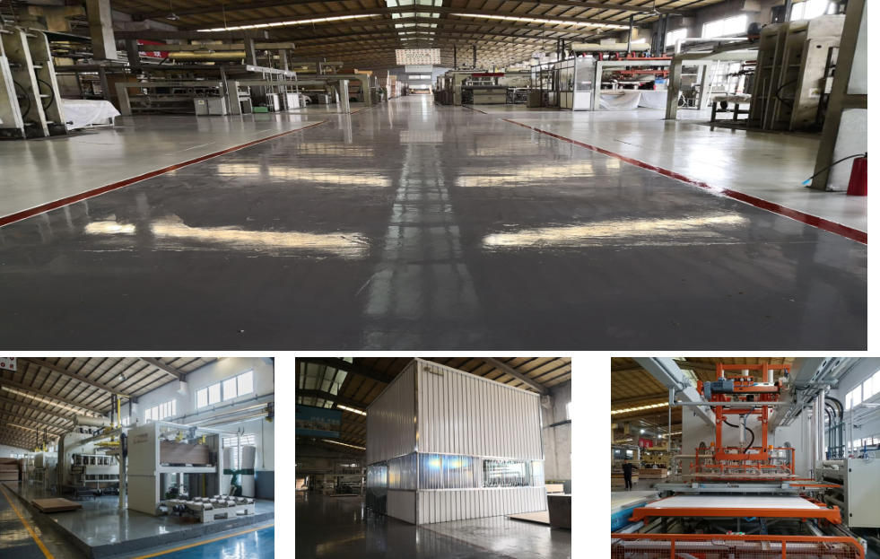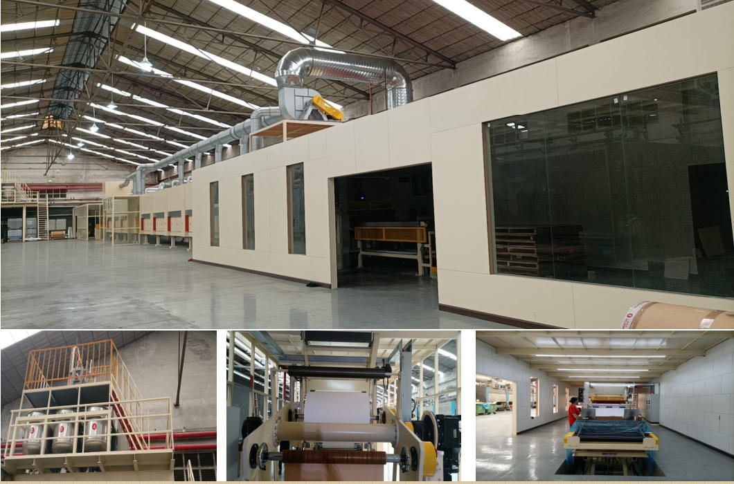 ● 德国进口浸渍生产设备,为每一种产品从印 刷源头到浸渍收料,再到压贴加工成型,最后到封边条的配套使用,提供“一站式”全套解决方案。
